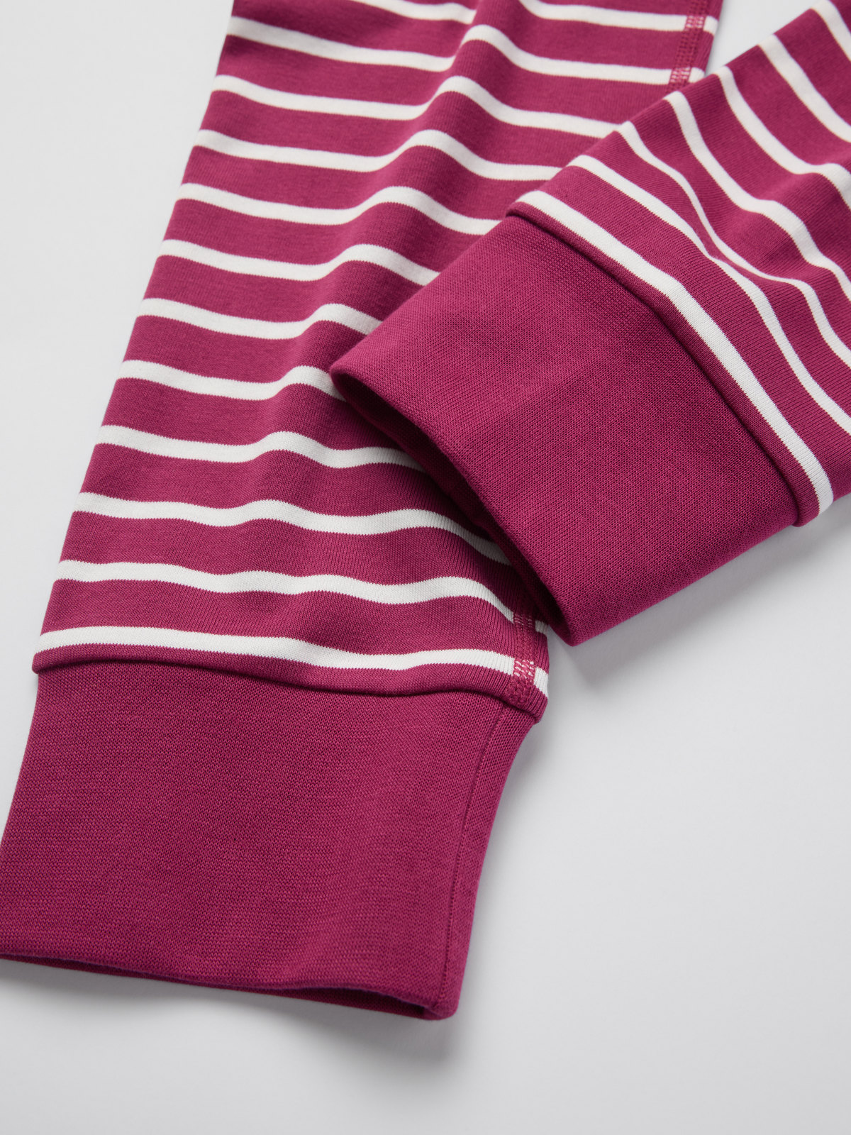 Set bestehend aus Shirt und Hose mit unseren klassischen Streifen in Erwachsenengrößen. Ausschnitt und Ärmelabschlüsse sind mit weichen Rippenbündchen besetzt. Die Hose mit elastischem Bund hat weiche Rippenbündchen an den Beinabschlüssen.