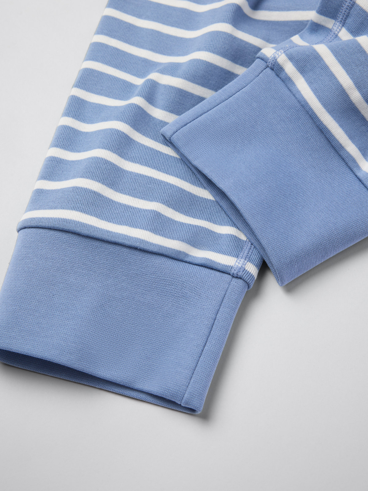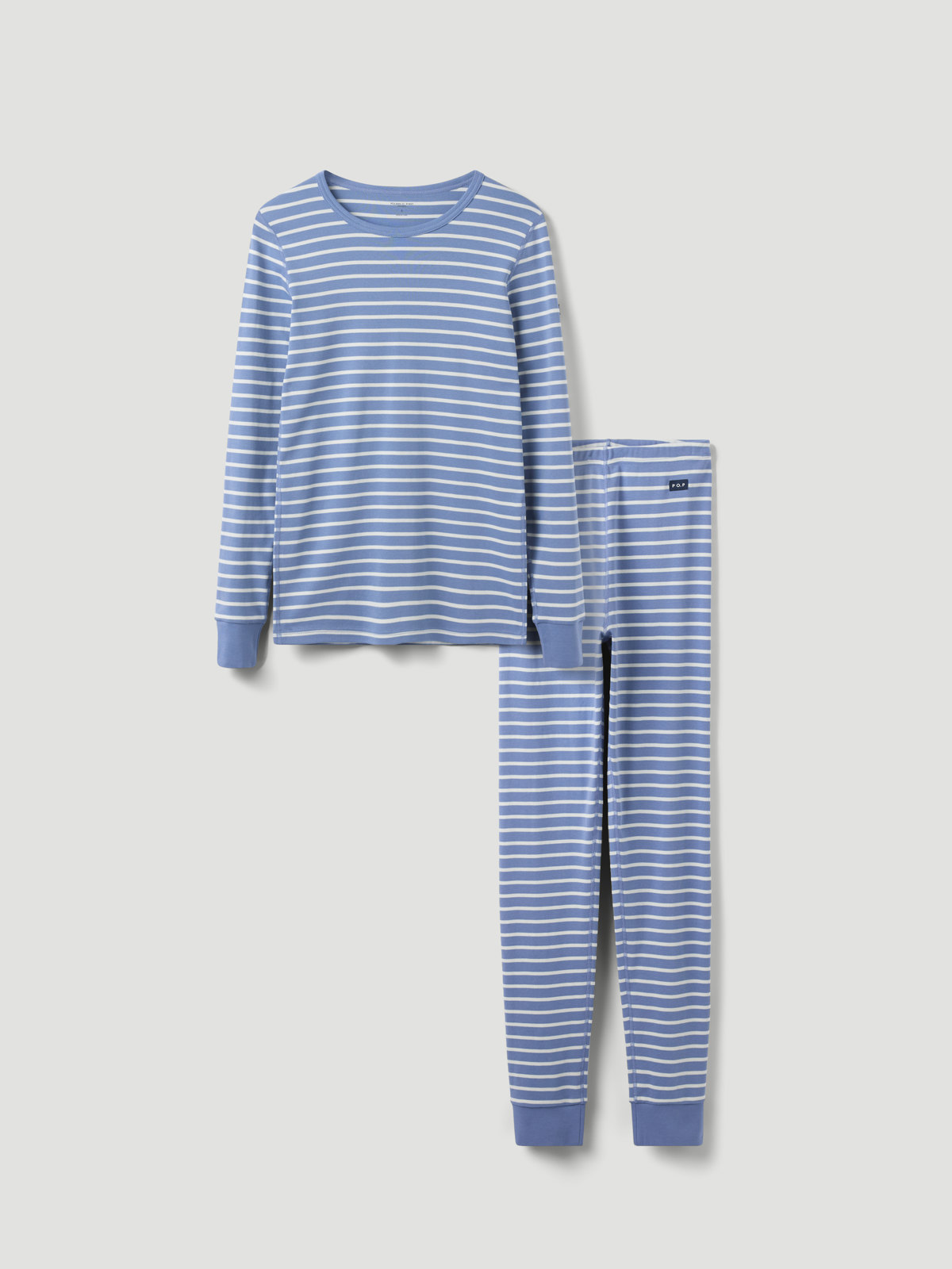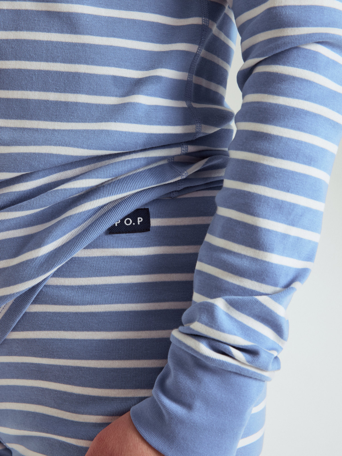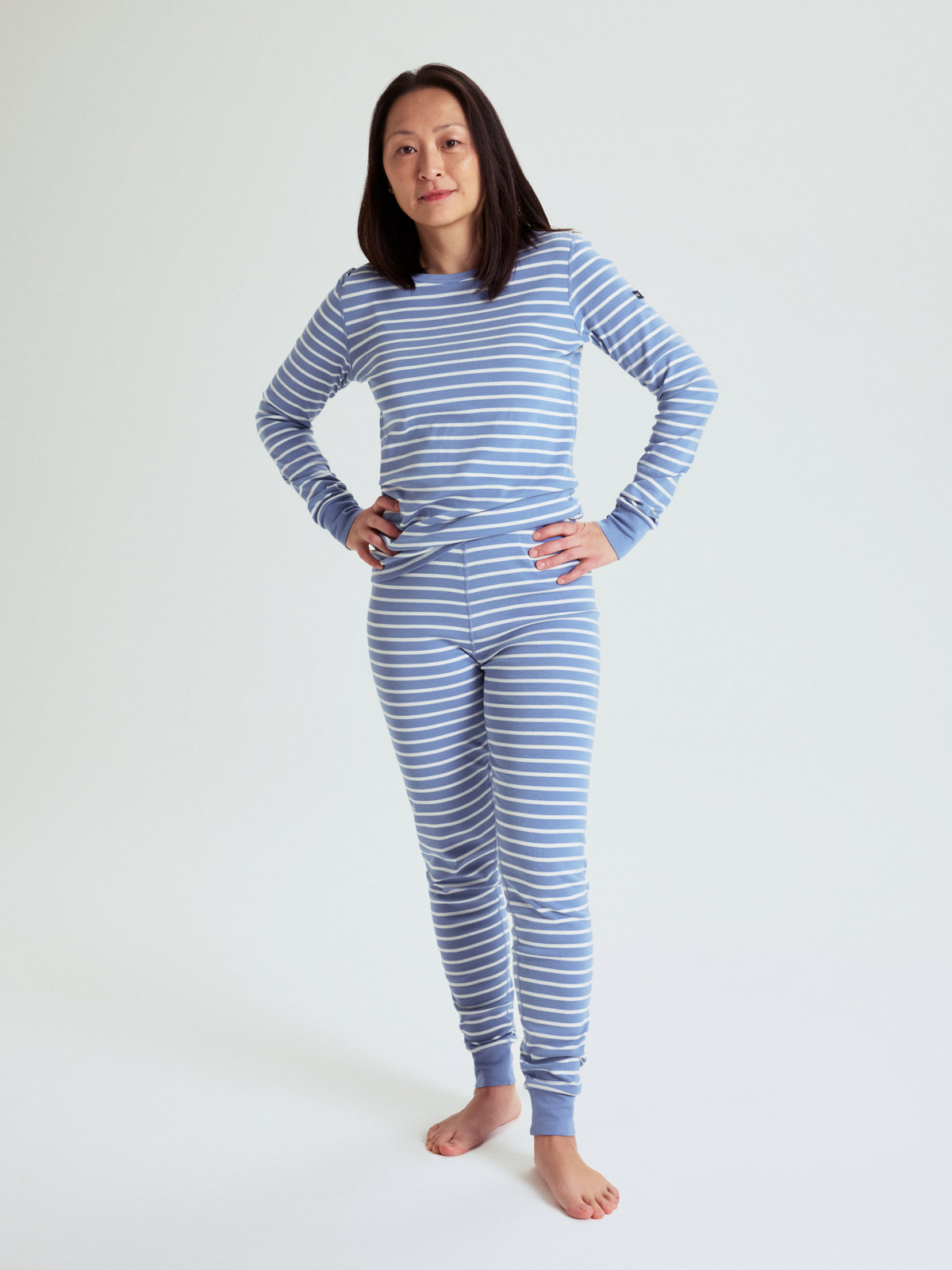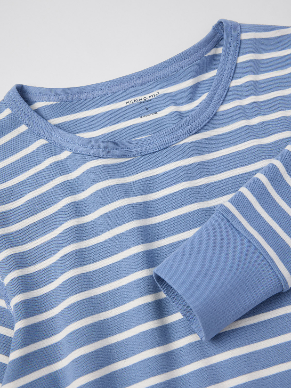 Set bestehend aus Shirt und Hose mit unseren klassischen Streifen in Erwachsenengrößen. Ausschnitt und Ärmelabschlüsse sind mit weichen Rippenbündchen besetzt. Die Hose mit elastischem Bund hat weiche Rippenbündchen an den Beinabschlüssen.