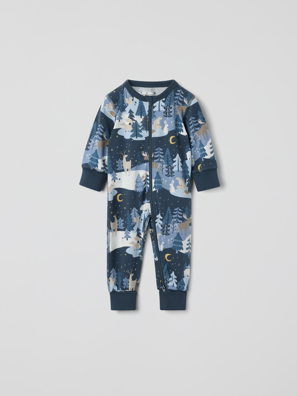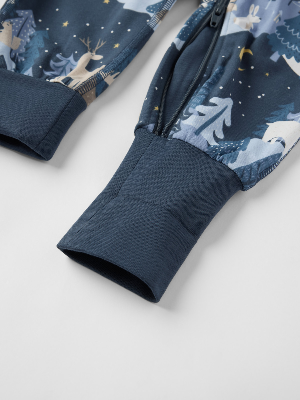 Schlafoverall aus weicher Bio-Baumwolle mit besonders weichen, flachen Nähten, die sanft zu empfindlicher Haut sind. Die extra langen Bündchen an Ärmel- und Beinabschlüssen können umgeschlagen werden, dadurch wächst das Kleidungsstück etwas mit deinem Kind mit. Der lange Reißverschluss reicht vom Hals bis zum Beinabschluss und kann von oben und unten geöffnet werden; das ist praktisch beim An- und Ausziehen.
