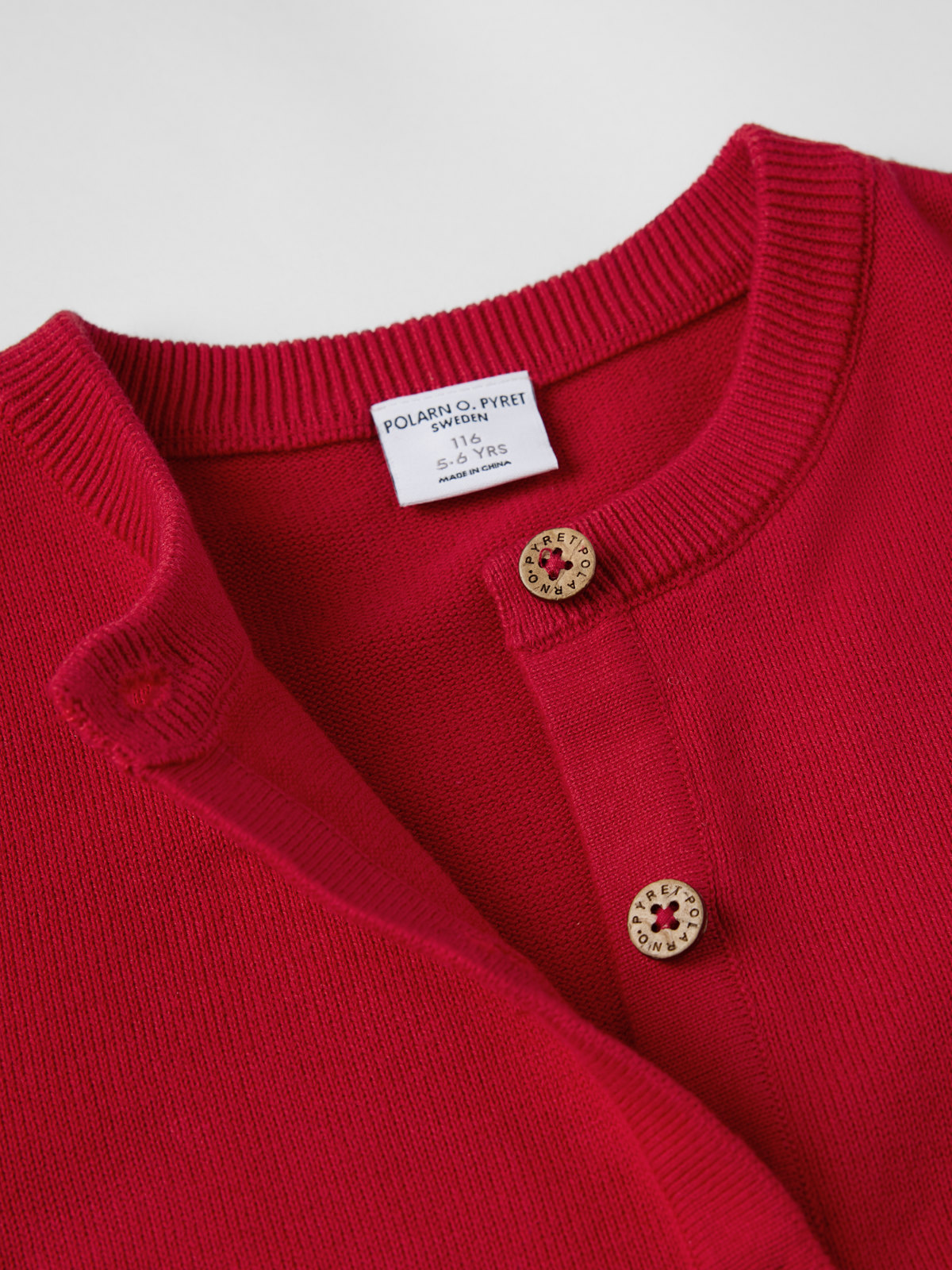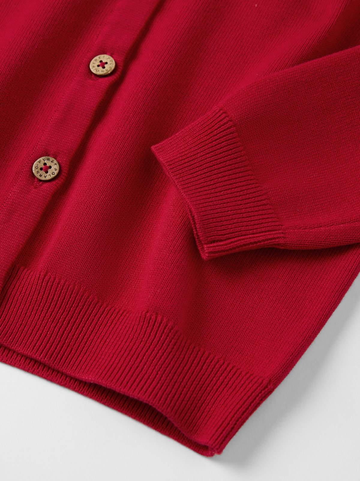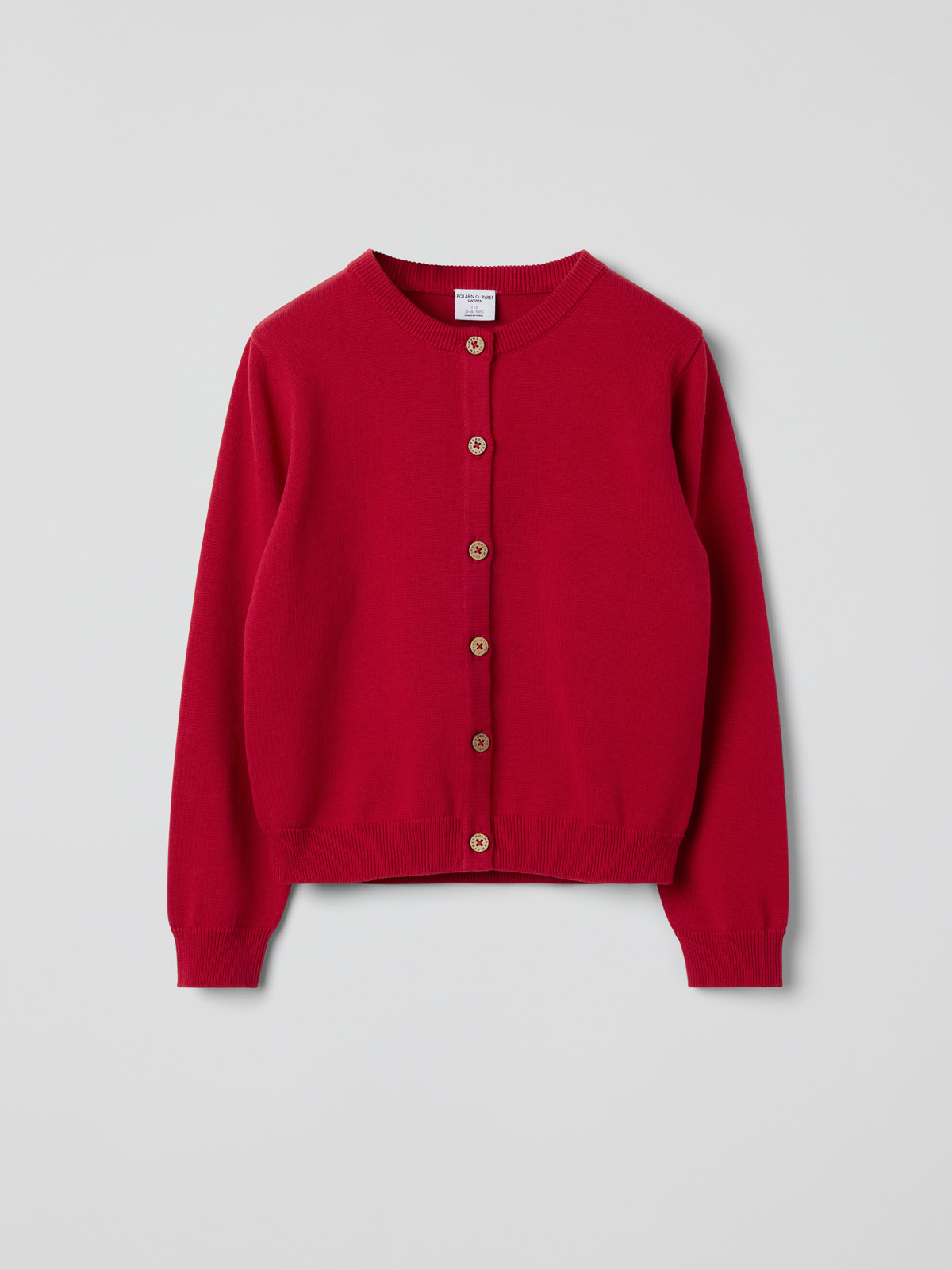 Feinstrick-Cardigan aus weicher Bio-Baumwolle – eines der Must-Have-Teile der Saison! Die Cardigan wird vorne mit Knöpfen geschlossen. Gerippte Bündchen an Hals, Ärmeln und Saum sorgen für eine bequeme Passform.
