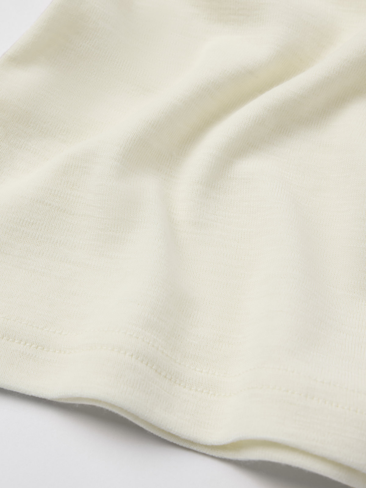 T-Shirt aus weicher, wärmender Merinowolle – perfekt als erste Schicht direkt auf der Haut. Merinowolle wärmt auch, wenn sie feucht geworden ist und trägt zur Regulierung der Körpertemperatur bei. Das T-Shirt ist mit besonders weichen Nähten gearbeitet. Zusammen mit der dazugehörigen langen Unterhose wird daraus ein tolles Funktionsunterwäsche-Set für kalte Wintertage.