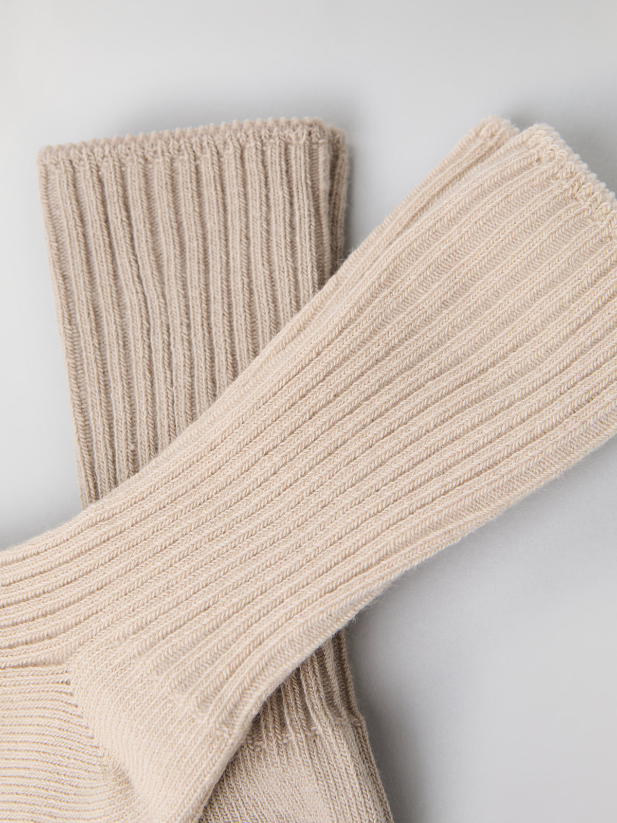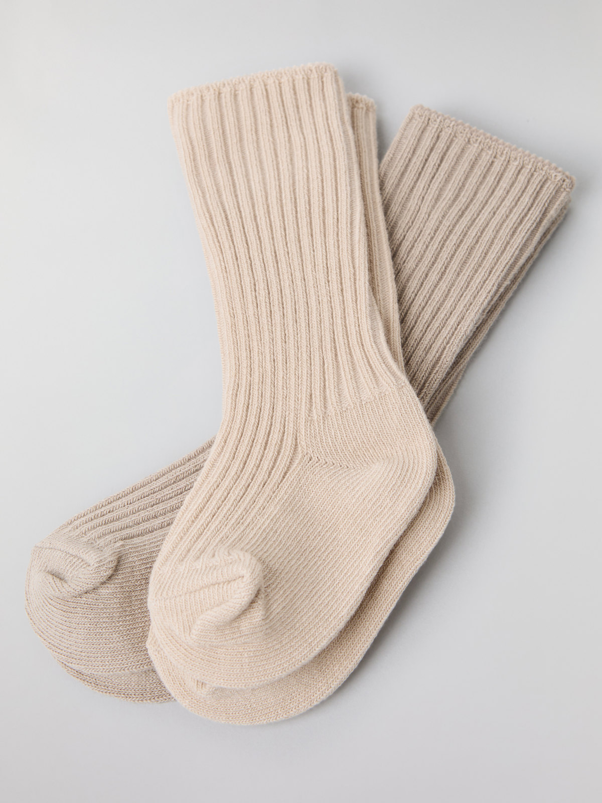 Hier kommen zwei Paar einfarbiger Söckchen aus weicher Bio-Baumwolle für Babys zum Auffüllen der Sockenschublade. Die Söckchen haben weiche Bündchen zum Umschlagen, die nicht kratzen.