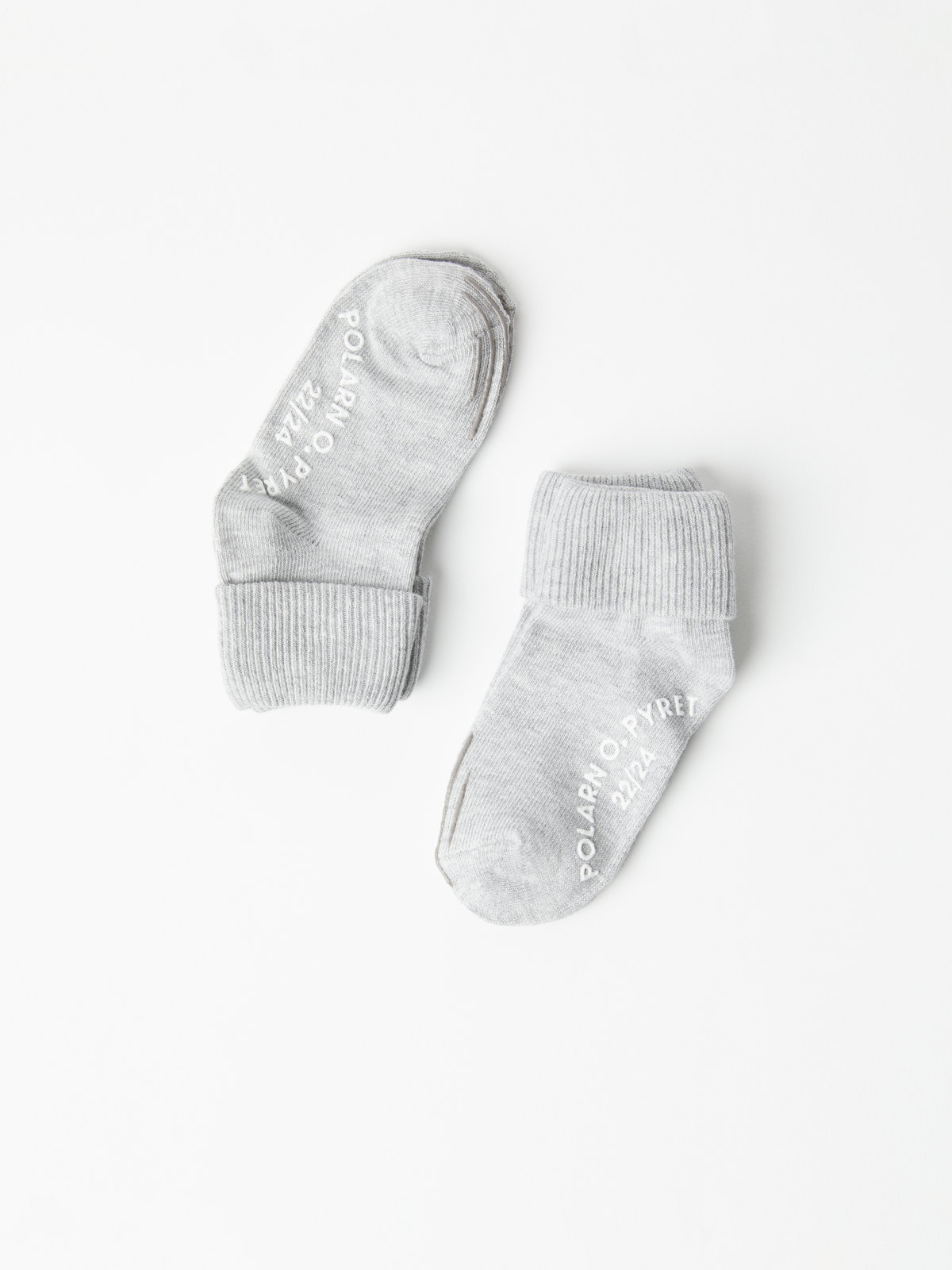 Zweier-Pack Söckchen mit rutschhemmenden Noppen für Babys. Die Söckchen haben auch auf der Oberseite rutschhemmende Noppen - eine tolle Hilfe, wenn die Kleinen anfangen zu krabbeln. Die Bündchen können umgeschlagen werden. Dieser Artikel ist Teil unseres 3-für-2-Angebots. Es kann nicht mit anderen Angeboten kombiniert werden.