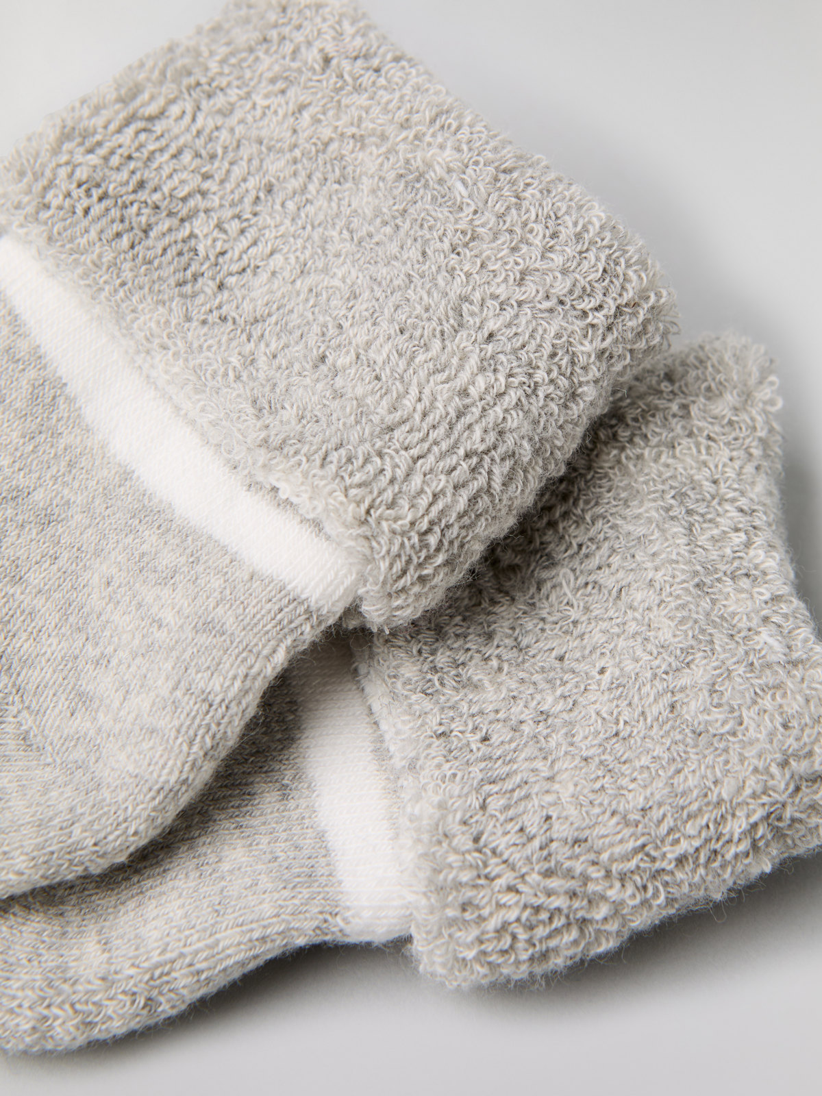 Wollfrottee-Söckchen in unseren klassischen Streifen für Babys. Die Söckchen werden aus weicher Bio-Baumwolle gefertigt. Dieses Produkt ist Teil unseres 3-für-2-Angebots. Es kann nicht mit anderen Angeboten kombiniert werden.