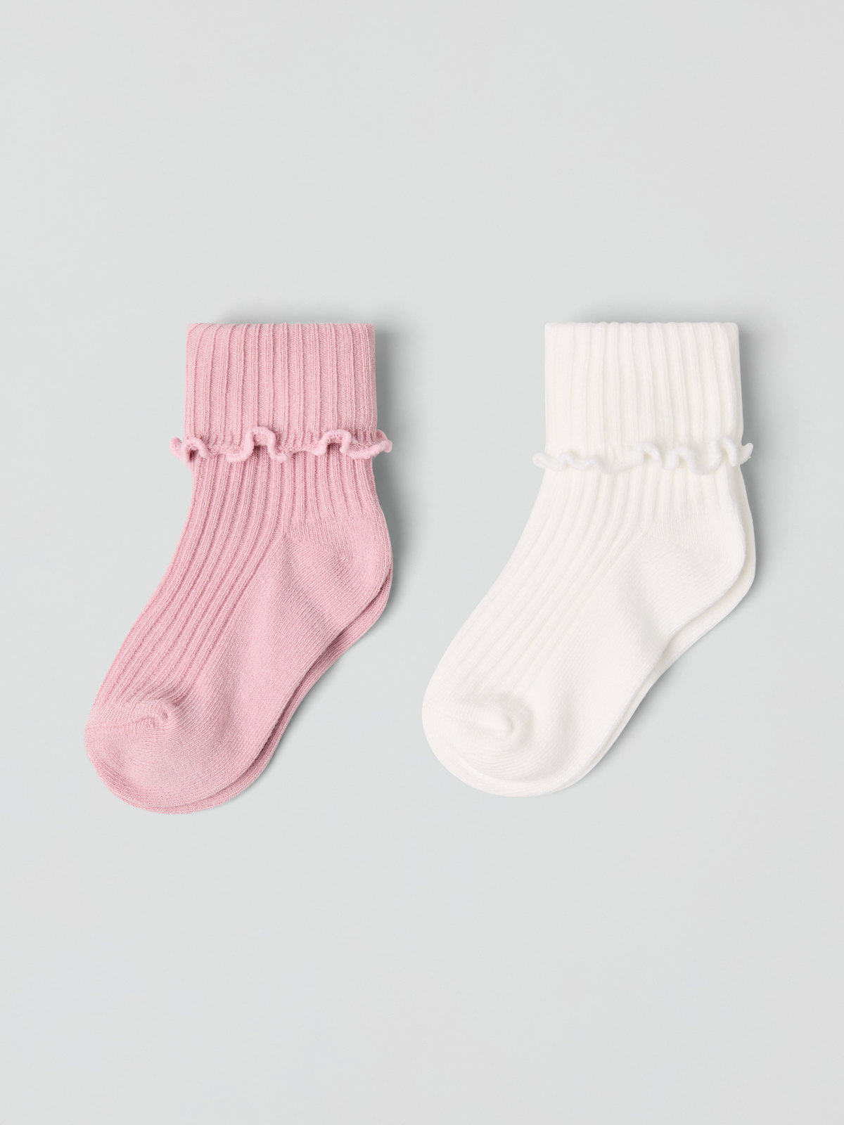 2er-Pack Söckchen aus weicher Bio-Baumwolle mit bezauberndem Rollsaum für Babys. Die Söckchen haben lange Bündchen zum Umschlagen für eine bequeme Passform. Sie passen perfekt zu unserer gesamten Baby-Kollektion.