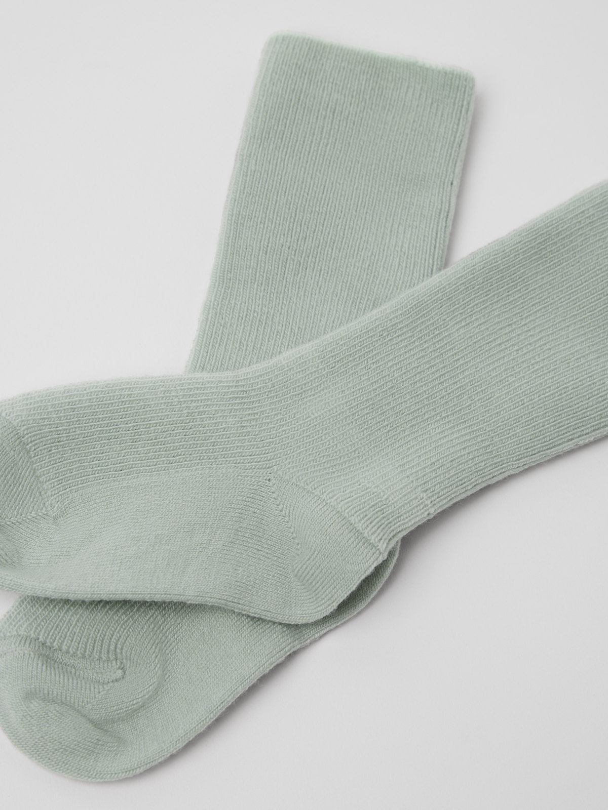 Einfarbige, bequeme Söckchen aus dünner Merinowolle, die bei Kälte schön warm halten. Die Strümpfe haben Bündchen zum Umschlagen, damit sie auch an allerkleinsten Füßen gut sitzen.
