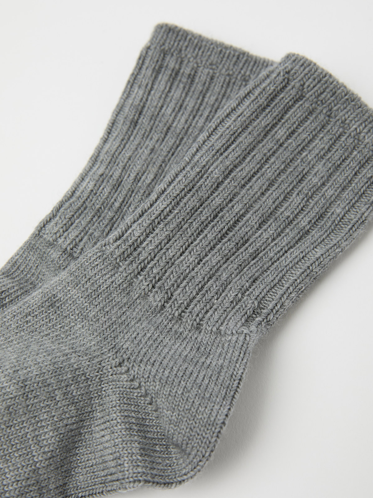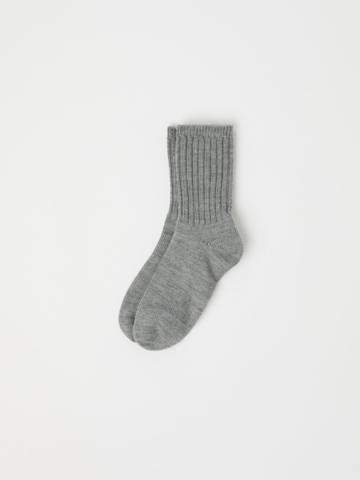 In den dicken Socken aus wärmender Merinowolle werden kleine Füße nicht kalt. Die Söckchen haben lange Rippenbündchen und die Größe ist auf der Innenseite des Schafts angegeben. Dort ist auch Platz für den Namen des Kindes. Ordnung halten ist so einfach!