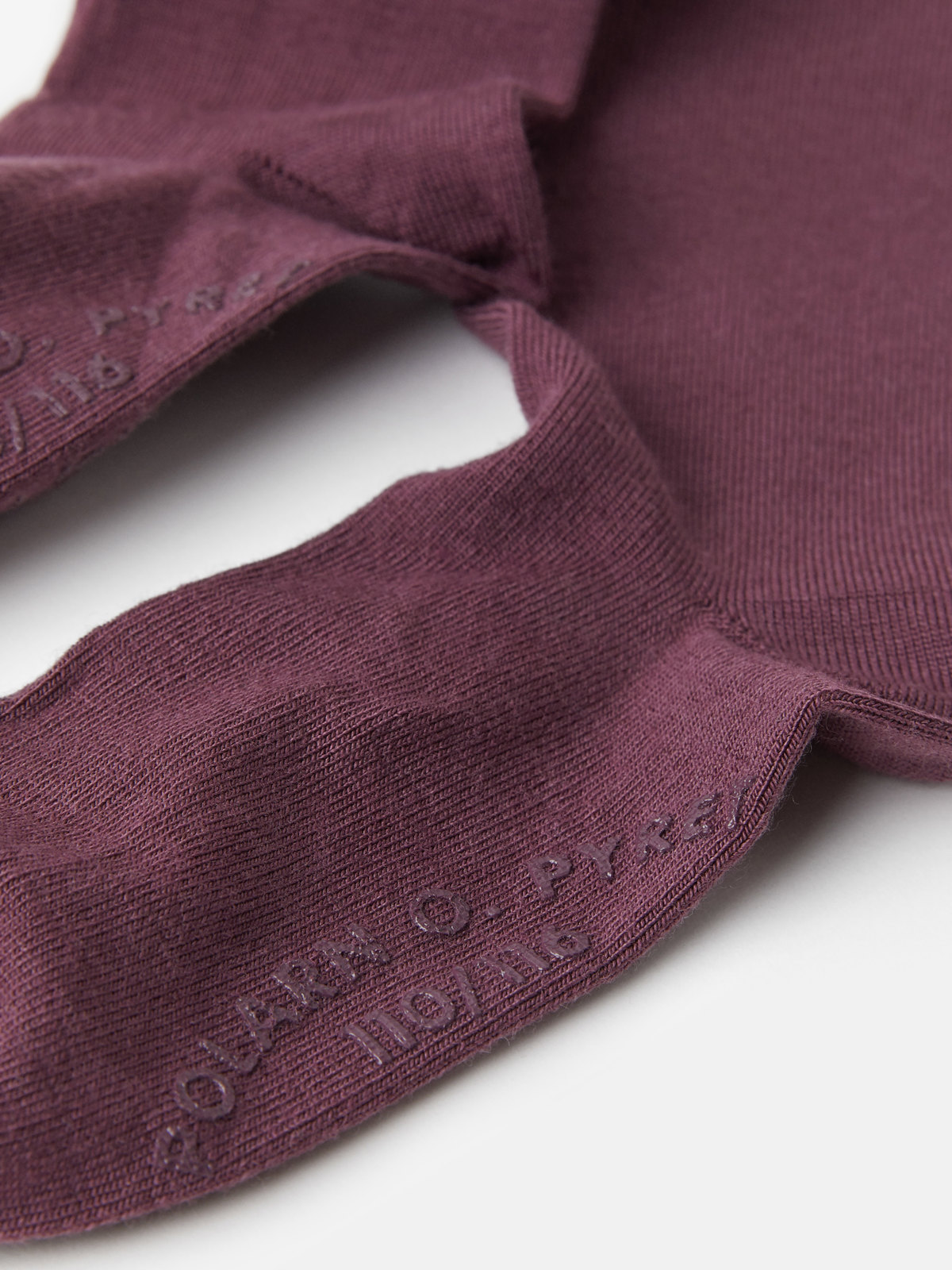 Einfarbige Strumpfhose aus weicher Merinowolle. Die Größen 74/80 bis 122/128 sind mit rutschhemmenden Noppen an der Fußunterseite versehen.