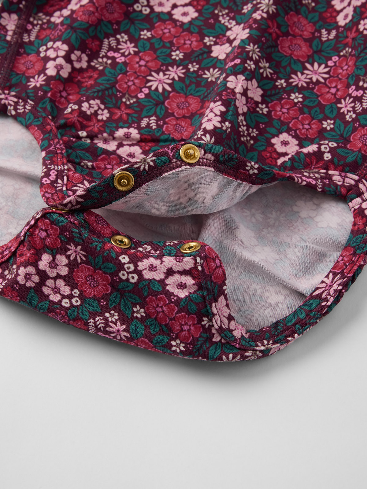 Druckknöpfe auf einer Schulter erleichtern das An- und Ausziehen.
