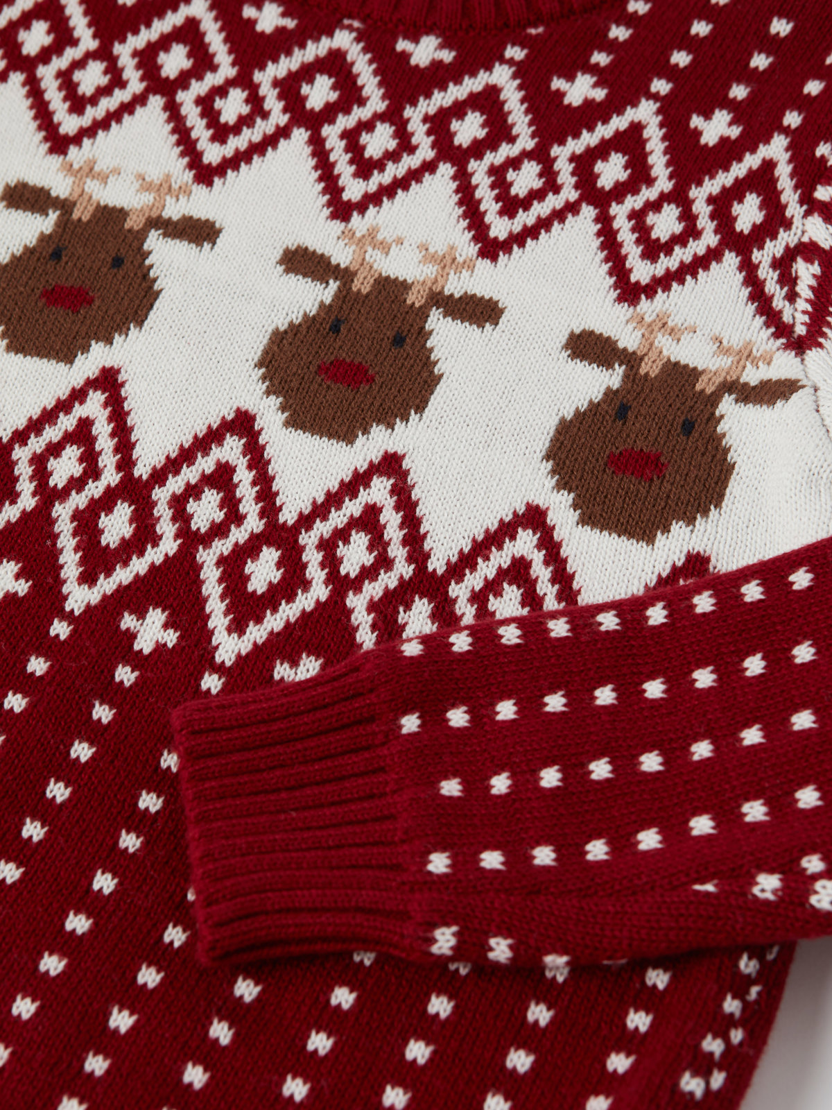 Oberteil aus Jacquardstrick mit winterlichem Muster aus 100 % Bio-Baumwolle. Der ultimative Weihnachtspullover!