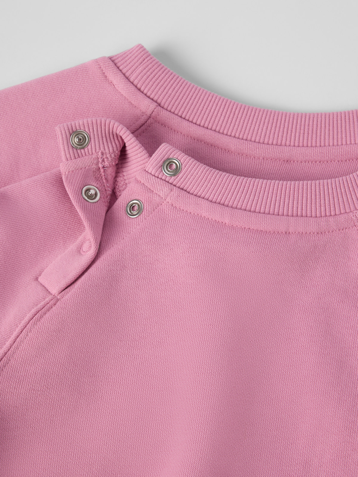 Die Größen 86 bis 92 werden hinten an einer Schulter mit Druckknöpfen geschlossen, um das An- und Ausziehen zu erleichtern.