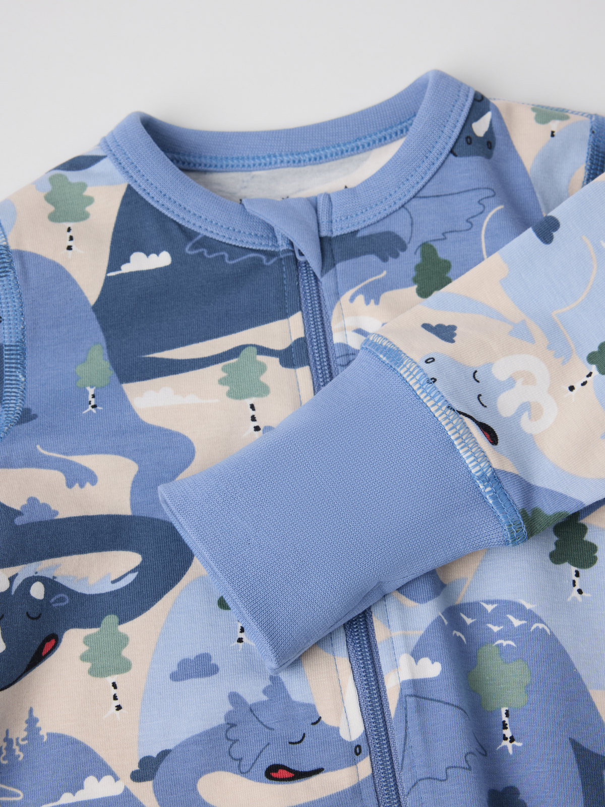 Schlafoverall aus weicher Bio-Baumwolle mit besonders weichen, flachen Nähten, die sanft zu empfindlicher Haut sind. Die extra langen Bündchen an Ärmel- und Beinabschlüssen können umgeschlagen werden, dadurch wächst das Kleidungsstück etwas mit deinem Kind mit. Der lange Reißverschluss reicht vom Hals bis zum Beinabschluss und kann von oben und unten geöffnet werden; das ist praktisch beim An- und Ausziehen.