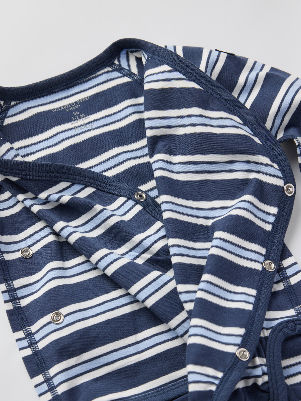 Verlängerbarer Wickelbody aus 100 % Bio-Baumwolle. Dank unserer praktischen Lösung mit einer zusätzlichen Reihe an Druckknöpfen im Schritt und Ärmelbündchen zum Umschlagen kann der Body mit deinem Baby mitwachsen!