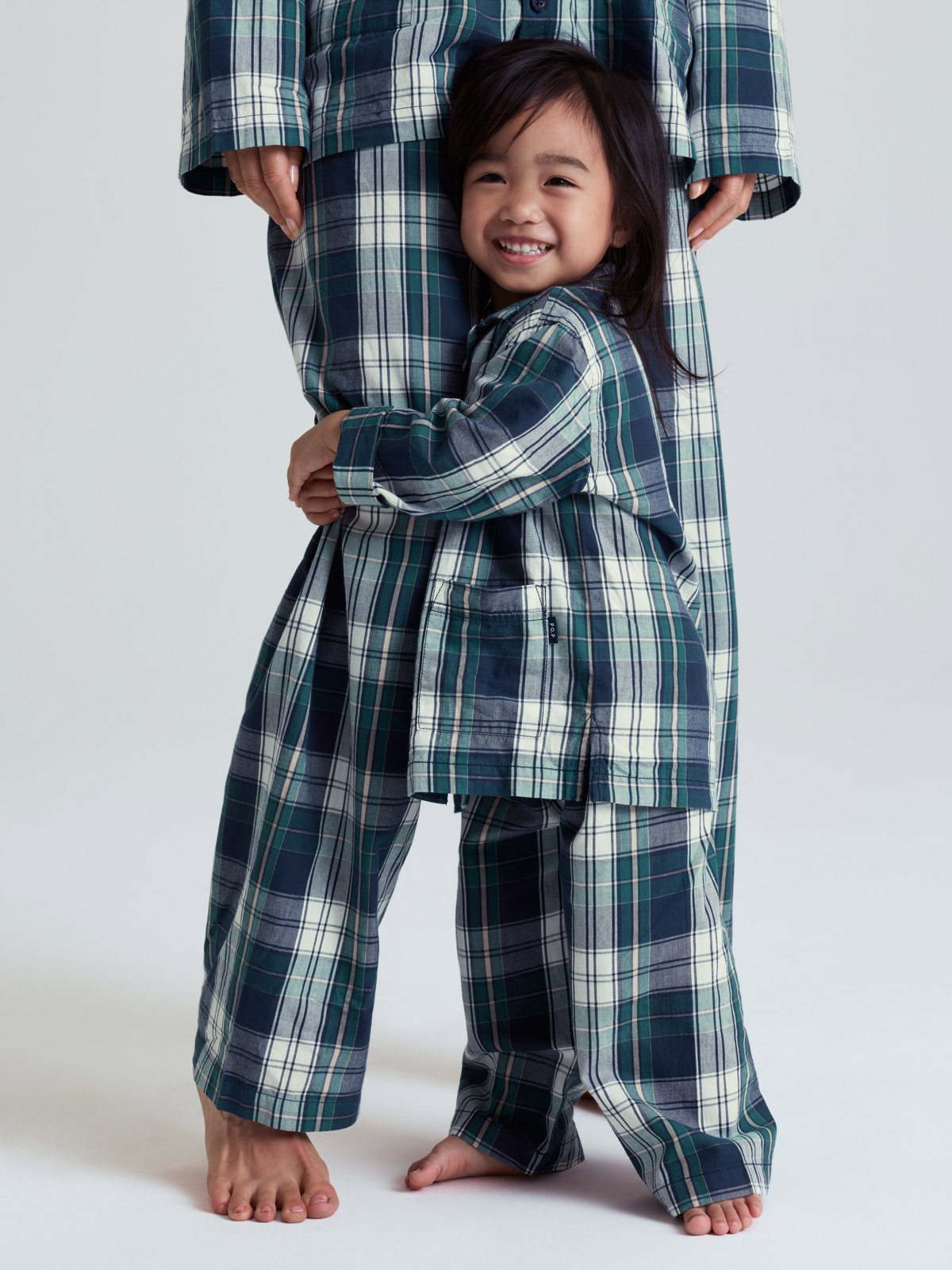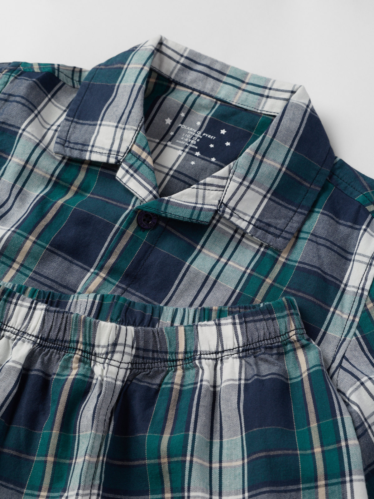 Zweiteiliger Schlafanzug mit Karomuster bestehend aus klassischem Hemd und gerade geschnittener Hose. Ein toller Look für die ganze Familie! Der Schlafanzug aus leicht angerauter Baumwolle hat einen elastischen Bund.