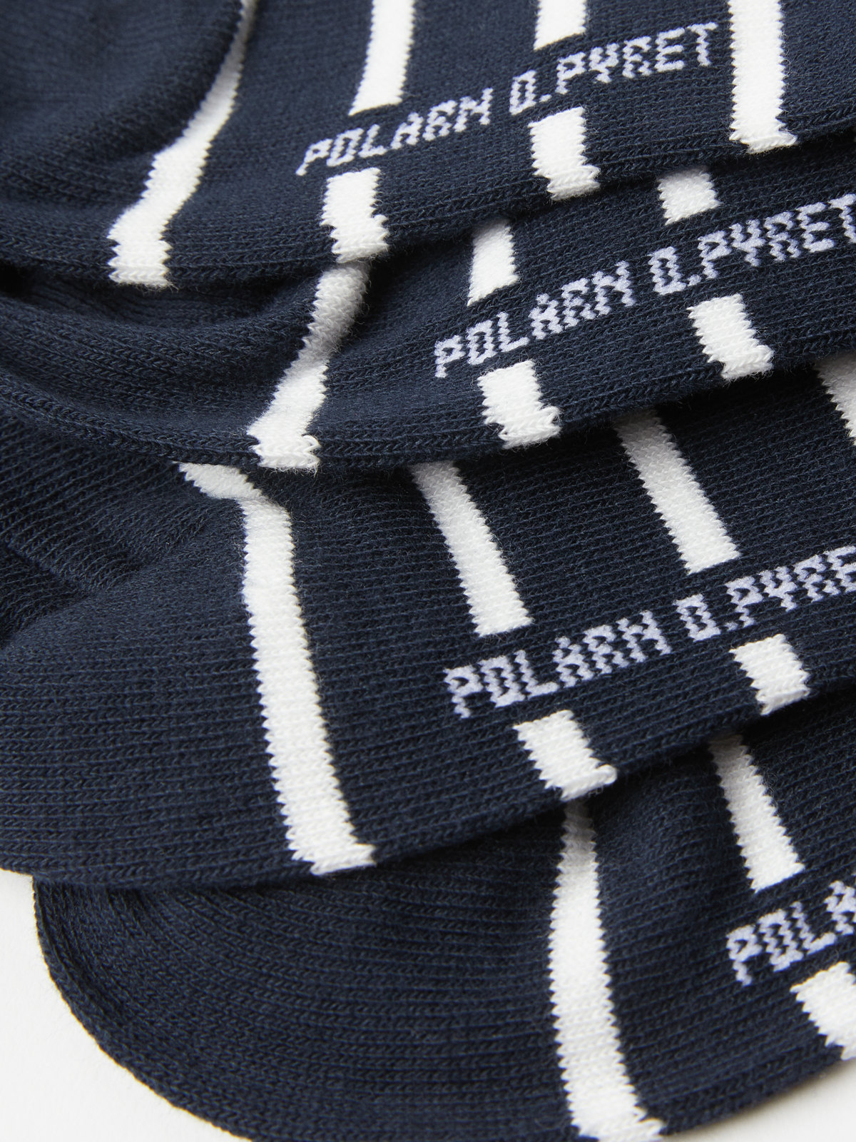 Zweier-Pack Socken aus weicher Bio-Baumwolle. Die Söckchen haben unser klassisches Streifenmuster, die Größe ist an der Innenseite des Schaftes angegeben. Dort ist auch Platz für den Namen des Kindes. Ordnung halten ist so einfach! Dieses Produkt ist Teil unseres 3-für-2-Angebots. Es kann nicht mit anderen Angeboten kombiniert werden.