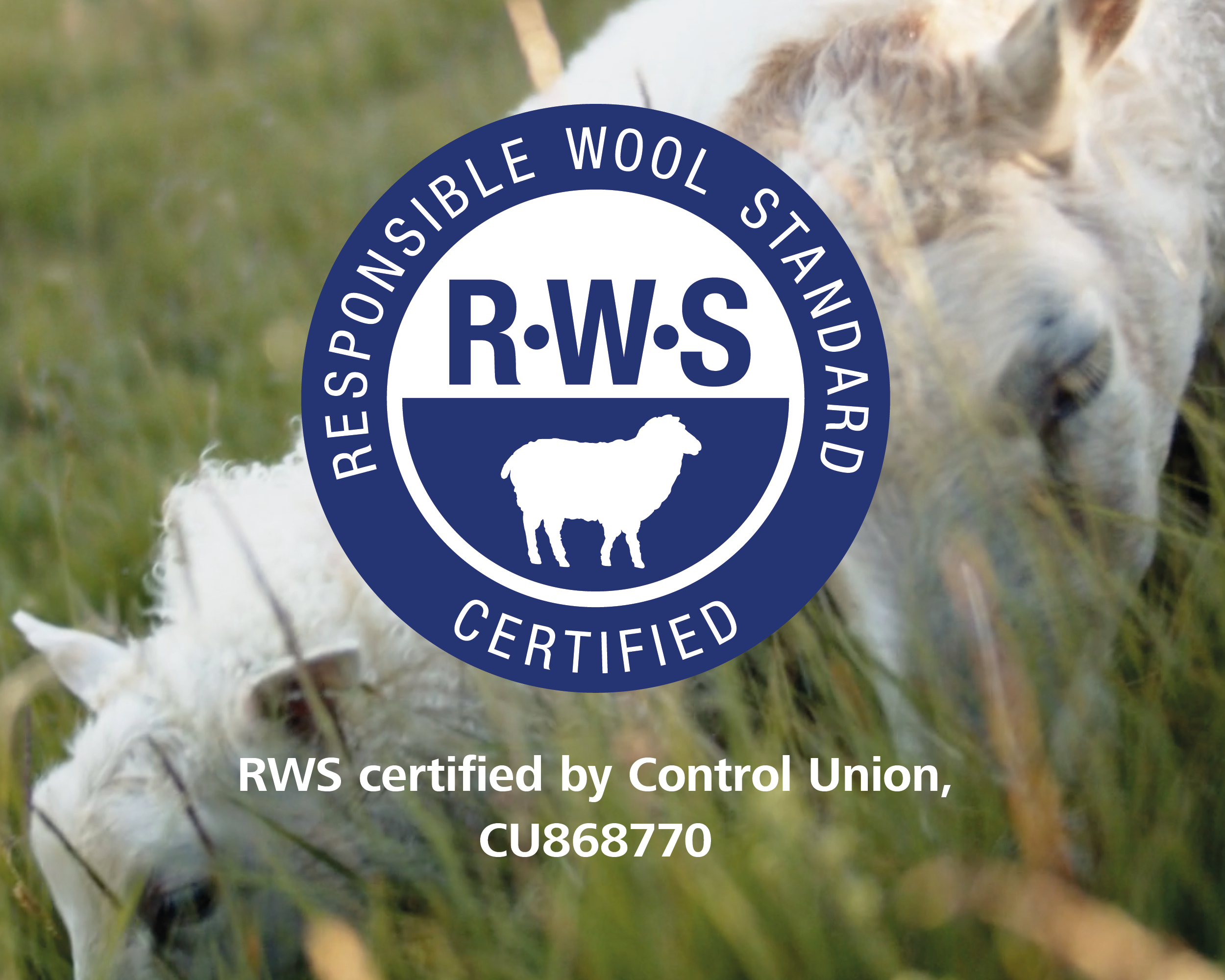 Responsible Wool Standard (RWS) beschreibt und zertifiziert Methoden in der Wollfaserproduktion, die dazu beitragen, das Wohlbefinden der Tiere und die Pflege der landwirtschaftlich genutzten Böden zu gewährleisten. Außerdem kann zertifiziertes Material vom Hof bis zum Endprodukt nachververfolgt werden.