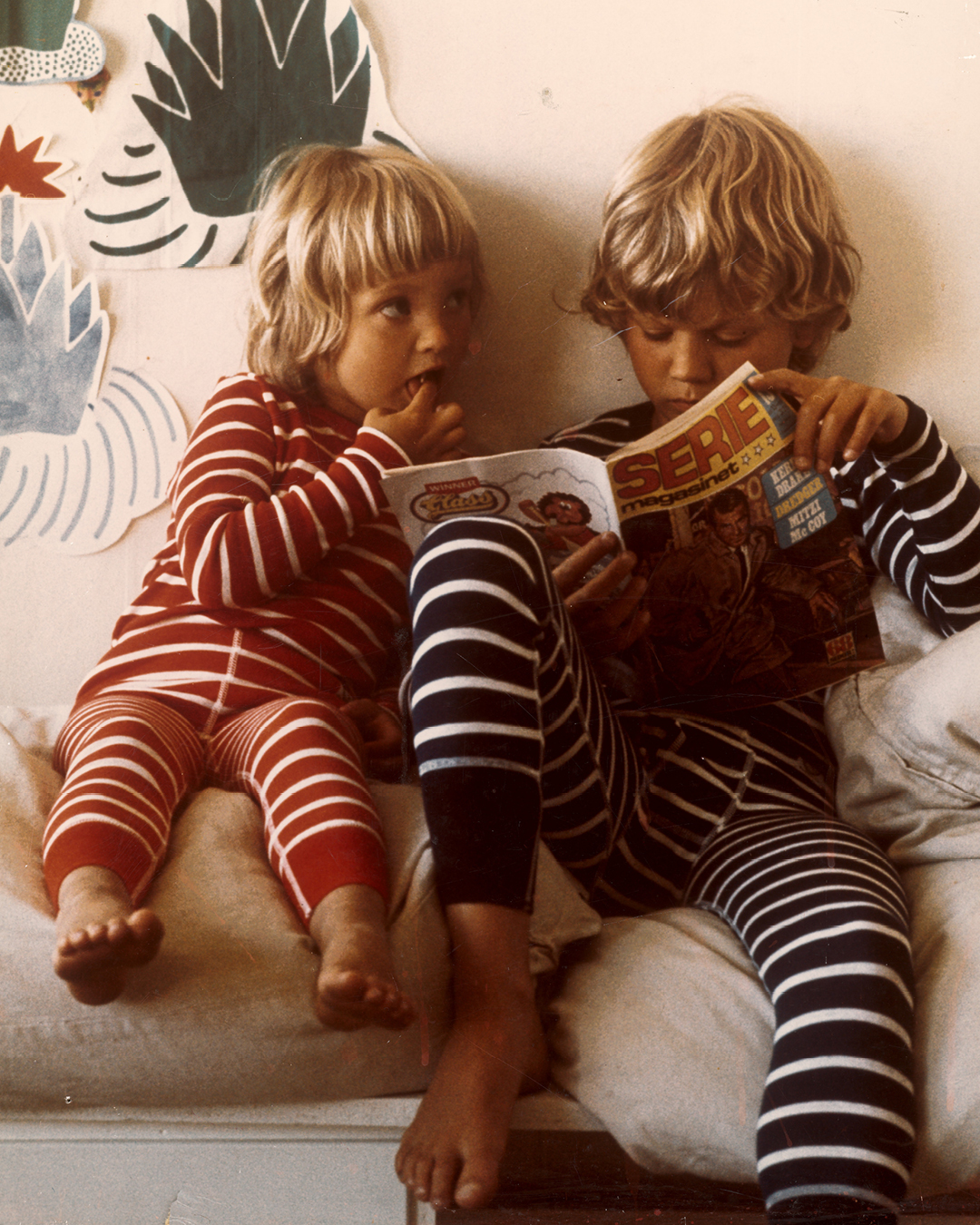 Mit dem Fokus auf Kinderbekleidung ging alles sehr schnell und im Rahmen einer hauseigenen Zusammenarbeit mit Gunila Axén und Katarina af Klintberg wurde in den 70er Jahren etwas ganz Besonderes geschaffen: PO.P Originals – unsere Basics mit klassischen Streifen. Damals wurden sie in Rot, Blau und Braun vorgestellt. Eine bewusste Farbwahl basierend auf der Grundidee, dass Kinder Kinder sein sollten.